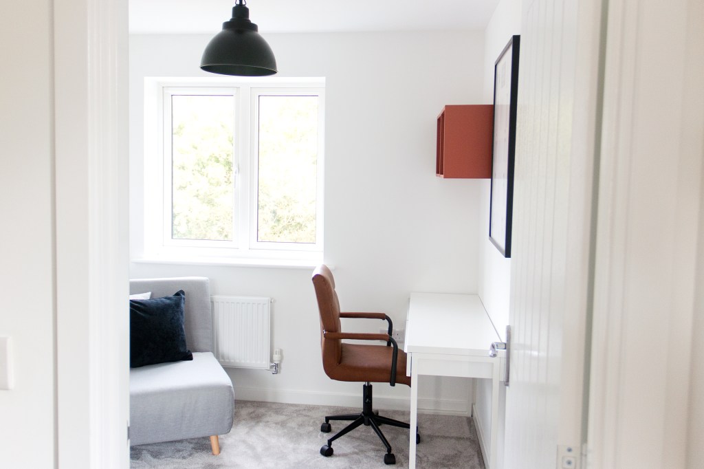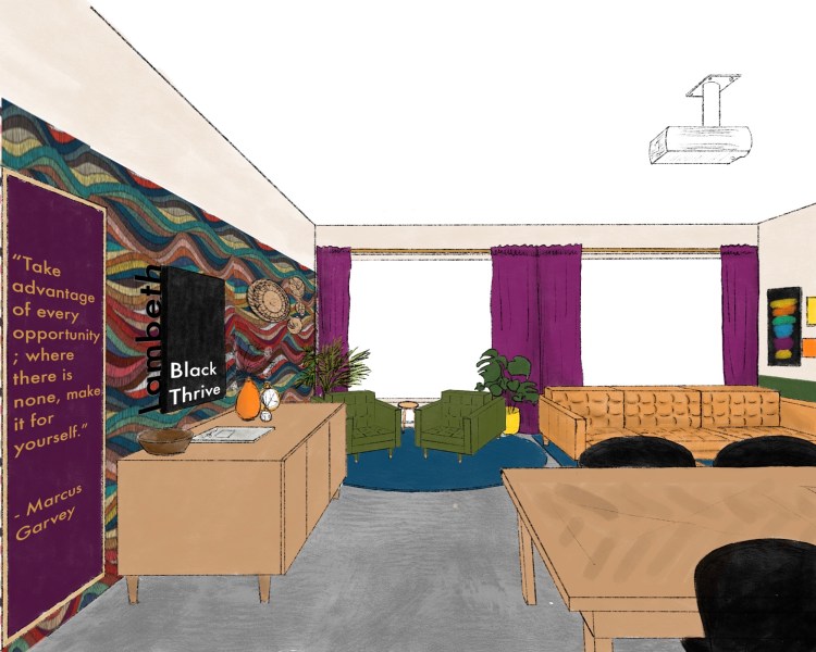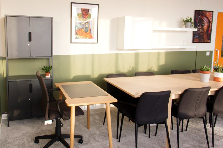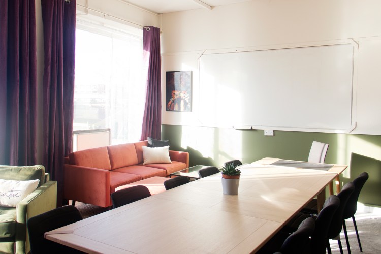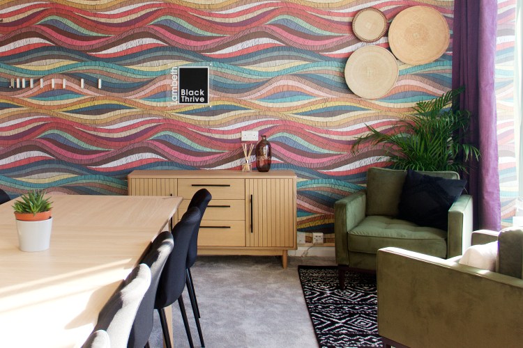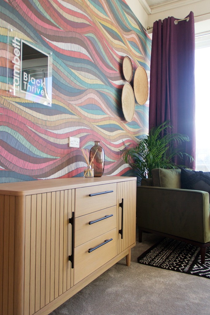 Images from our most recent London office project for Black Thrive, which involved revamping a small, tired, old office into a living room type space that the organisation can use to promote wellbeing within the black community. They will be able to do 1:1 and group therapy in here, as well as social activities such as book clubs, film nights, art and crafts and training sessions. That’s a lot for one room, but we managed to design the floor plan in a way that accommodates their needs! Swipe through the slideshow to see the before pictures and the original concept sketch.