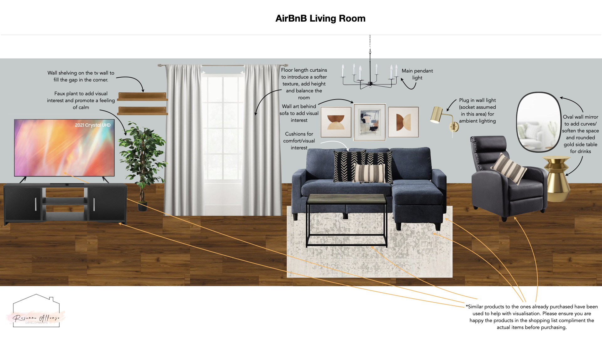 Rosanna Alfonso Developments provides an interior design service that is as involved as you need it to be. We can offer basic support and consultation through providing floor plans and vision boards for you to work with independently or we can work with your budget and manage the entire process from design to implementation. Below, are examples of the work that we do.