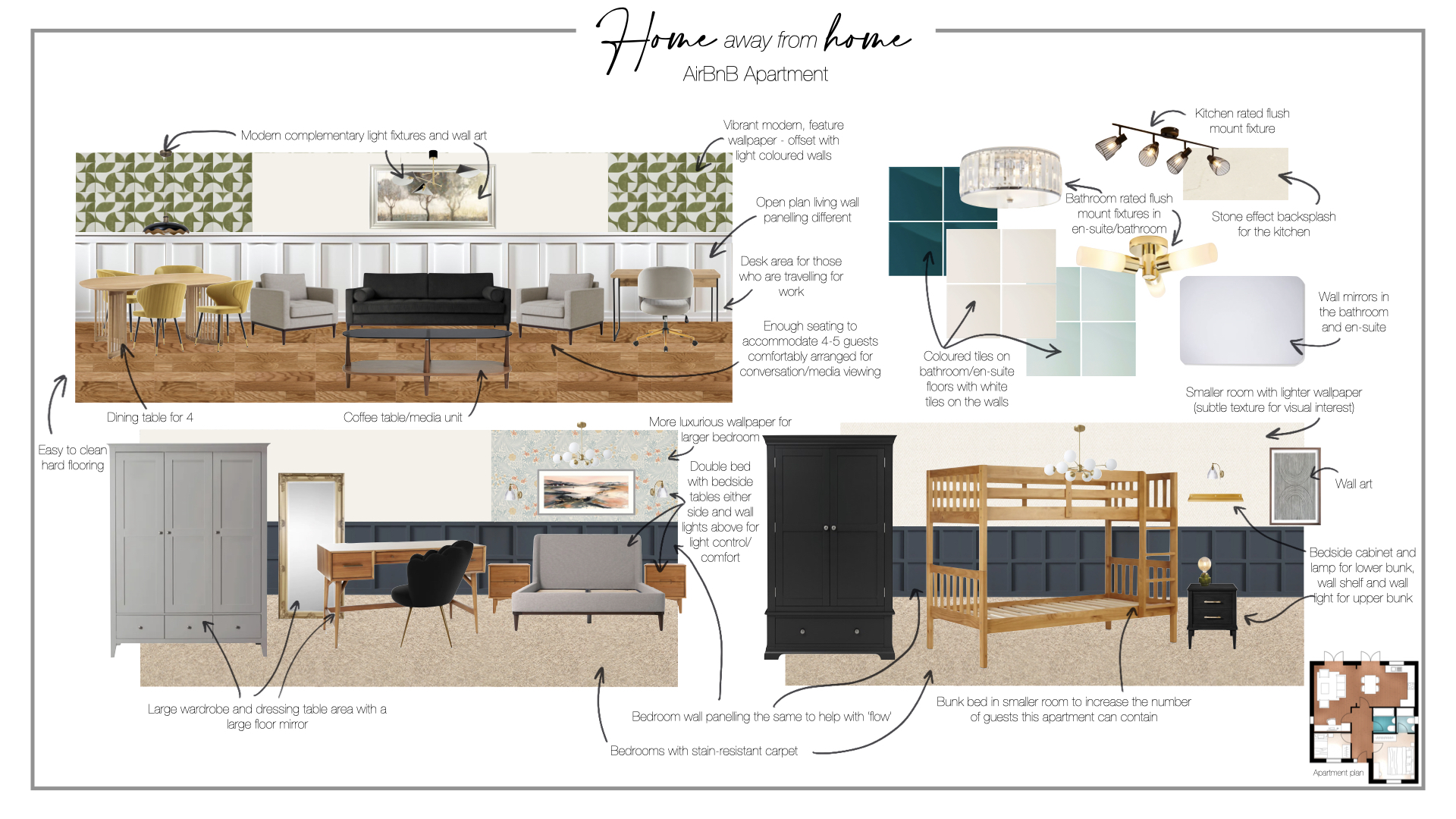 Quick mock up to show some of the furniture sourced for various rooms in the three bedroom house on the fountain gates development. This furniture was to be purchased and styled in the smaller house that was to be the show home. The properties were sold off plan before the development was complete/’show home ready’, so the show home was not needed in the end. Rosanna Alfonso Developments is looking for more opportunities to furnish show homes in new build developments, so please do get in touch if you are a house builder of any size and are looking to turn one (or more) of your homes into a show home.
